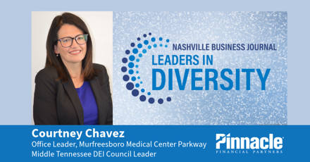 Courtney Chavez, office leader and head of Pinnacle’s Middle Tennessee DEI Council, has been named a Leader in Diversity, Equity and Inclusion by the Nashville Business Journal.
