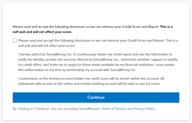 You will be taken to a form asking for your permission to retrieve your credit score and report.
